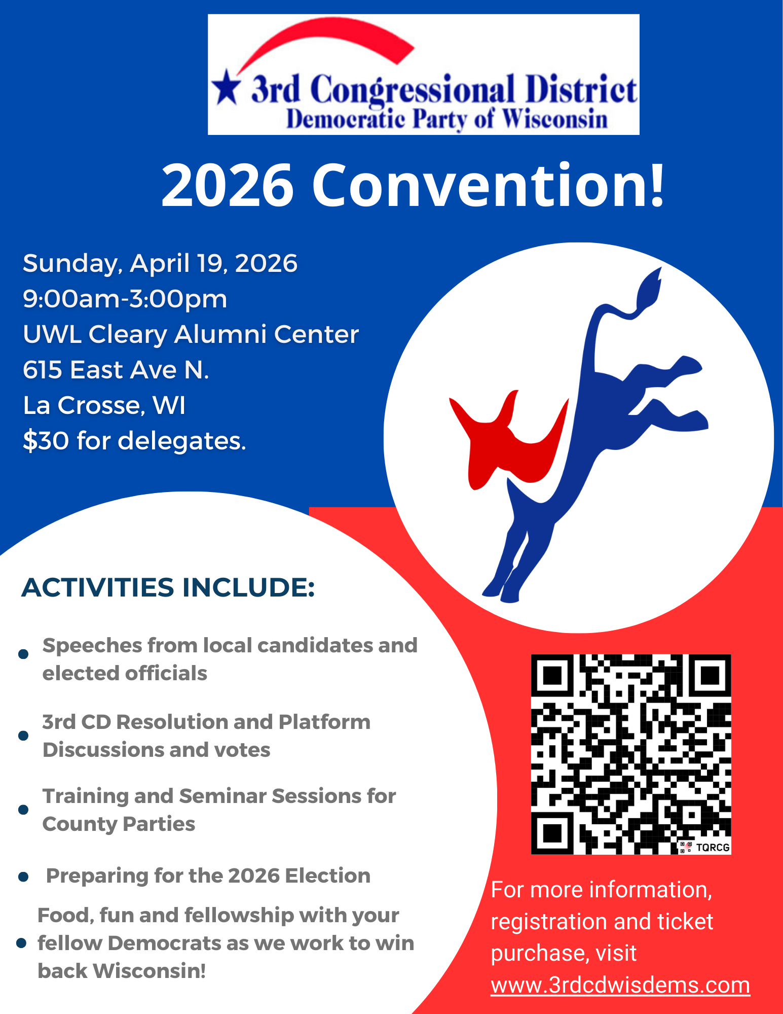 At our January meeting, we were happy to welcome Emily Berge (and husband Mike) to the group. Emily is running as a candidate for the 3rd Congressional District in the August Primary against Rebecca Cooke and Rodney Rave. The winner will take on Derrick Van Orden in the November 3 General Election.
