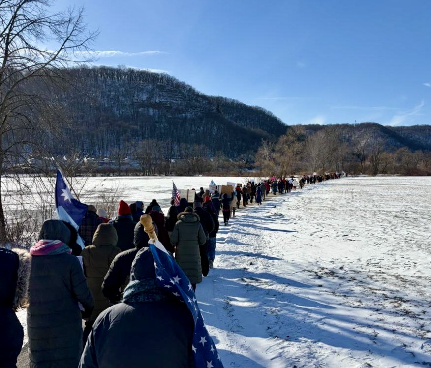 Saturday, Jan. 24th the Winona Rapid Response Team organized a second Freedom March (in the spirit of MLK, Jr.). Over 300 like-minded citizens (some from Wisconsin) gathered in sub-zero weather. Judging by the number of vehicles honking horns and giving thumbs up along Hwy 61, many others share the same opinion of ICE in our communities.
